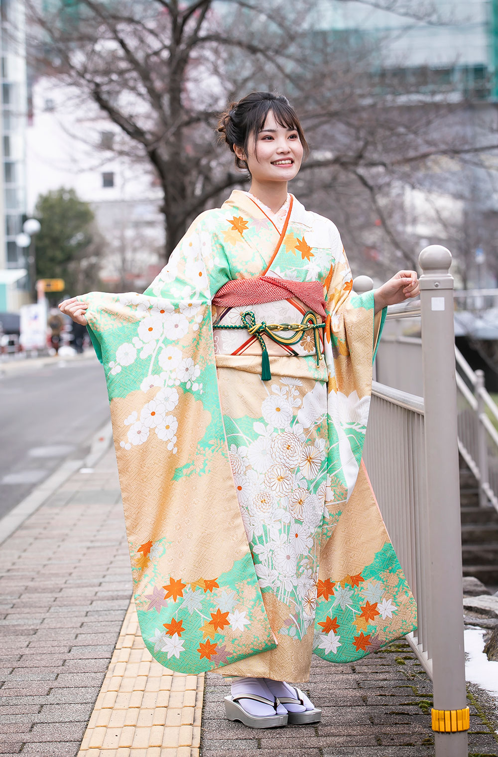 振袖一式と小物一式、セットでレンタルいたします。 *肌襦袢と足袋を除いて、着るときに必要なものをセットにして、レンタルいたします。