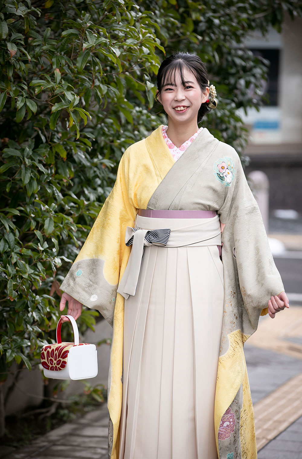 レンタル用袴着物はほとんどがポリエステルの着物と長襦袢。 当店では袴にも正絹のお品をご提案しています。 こちらの淡い色コーデは高校3年生のモデルさん本人のチョイスです。 凛々しく、可愛く、清楚です。 ママ振袖、ママ着物をリユースのご相談も承っておりますのでお気軽にお問い合わせください。