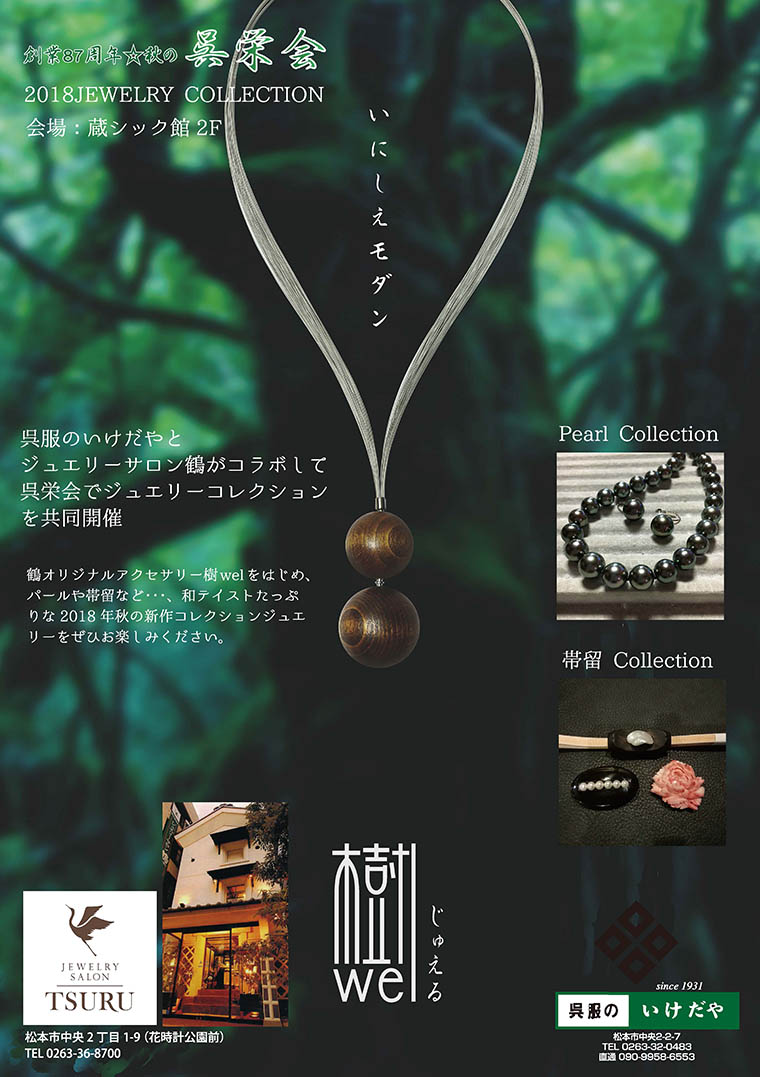 また会場2階ではジュエリーサロン鶴さんとのコラボで和テイストたっぷりのジュエリーコレクションもご紹介。