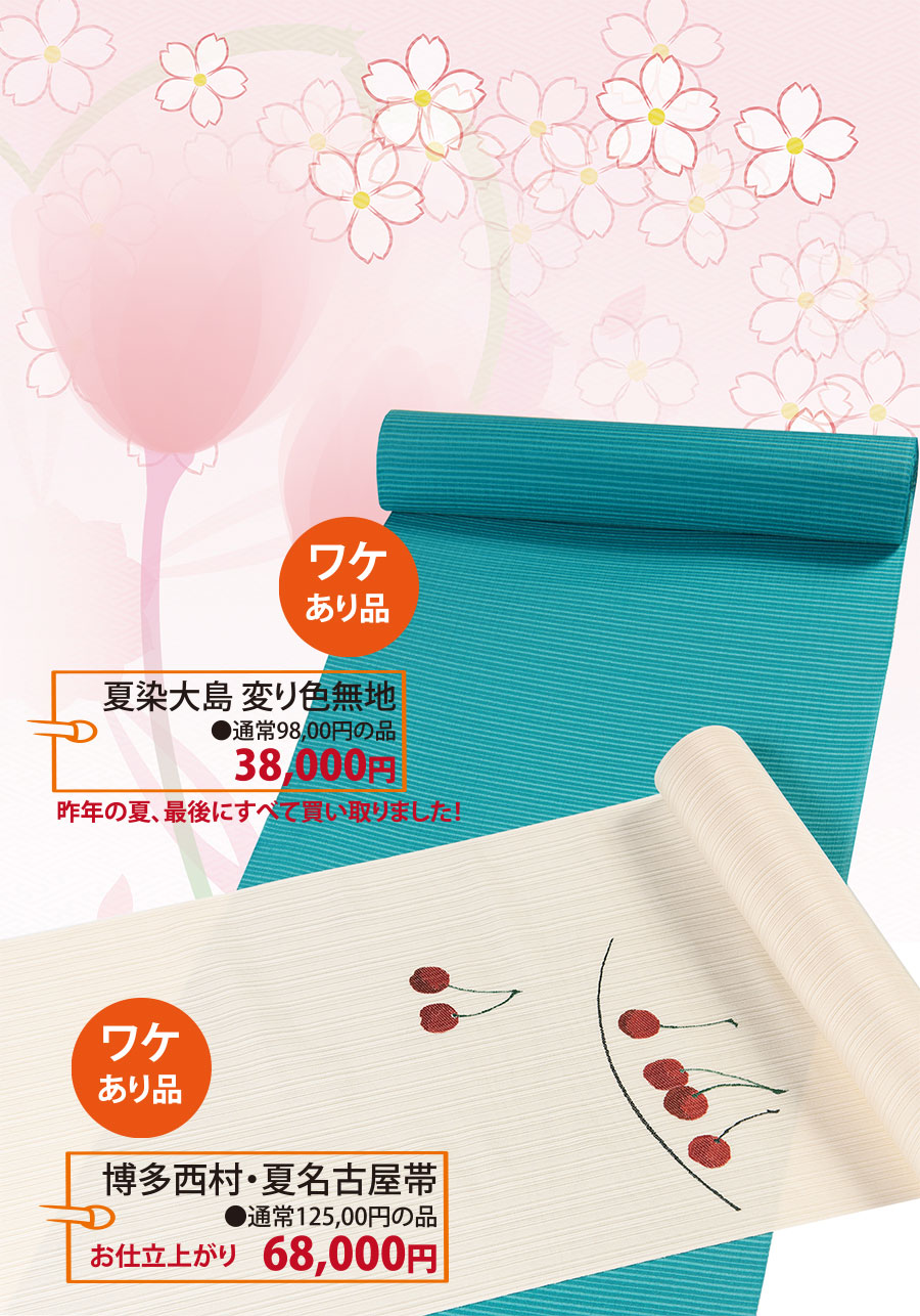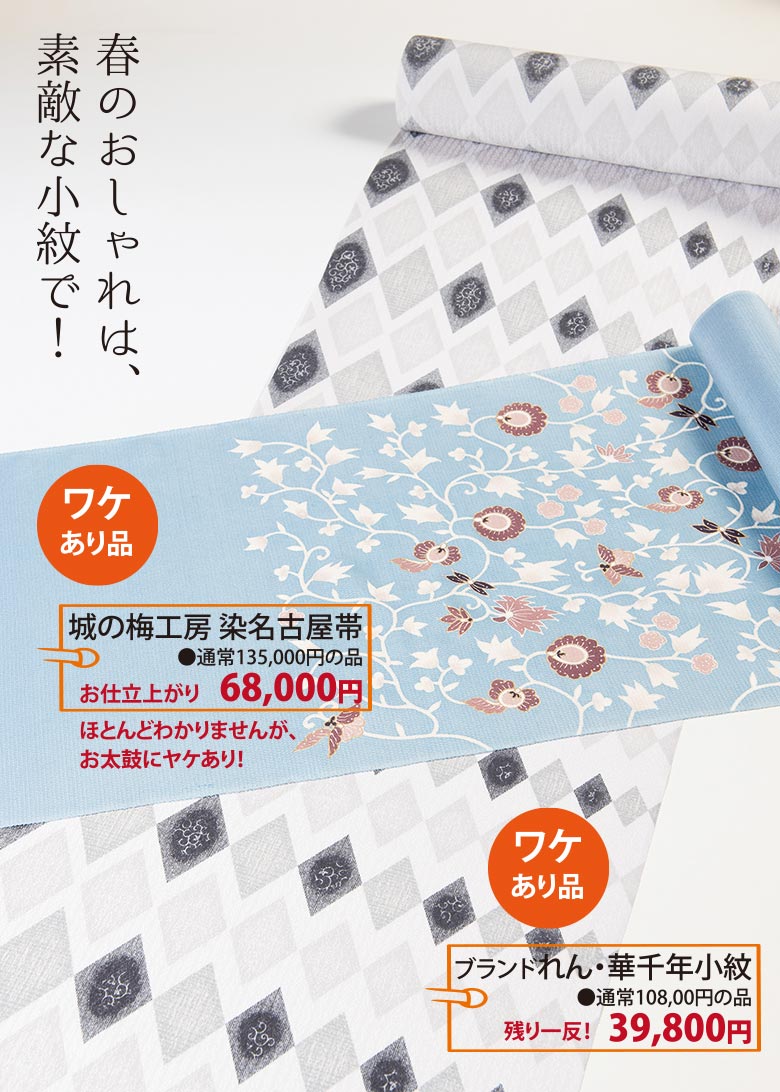 春の礼装からお洒落きものやお洒落帯、そして小物まで、 うきうきプライスでご紹介いたします。