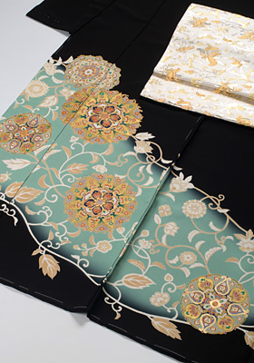 ご結婚の日にふさわしいお母様・ご親族様の留袖、パーティなど晴れやかな席にふさわしい訪問着や付下げ、改まったお茶席にふさわしい付下げなど、礼装きものもいけだやへおまかせください。