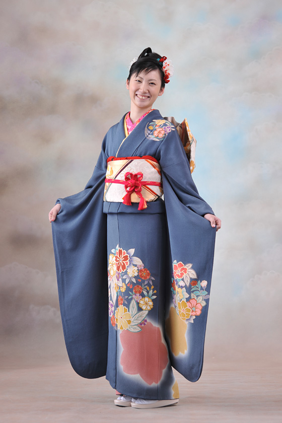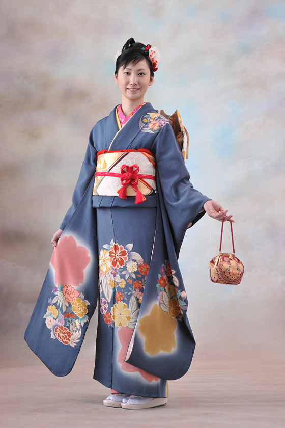 岡島ブランドのバッグでも知られる、京都の老舗染工房・岡重の上質な縮緬振袖です。