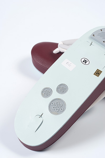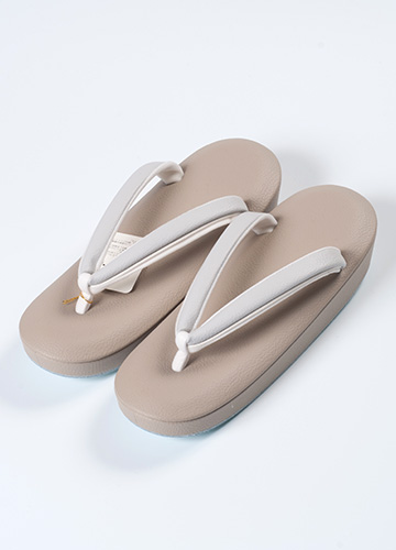 *底面ラバー付き草履は、右履き、左履き用を設定し、 安心・安定してお履きいただけるように工夫をしています。 ラバーは、適度な摩擦を得るように配慮し、 疲れにくくソフトな履き心地です。